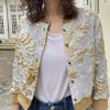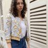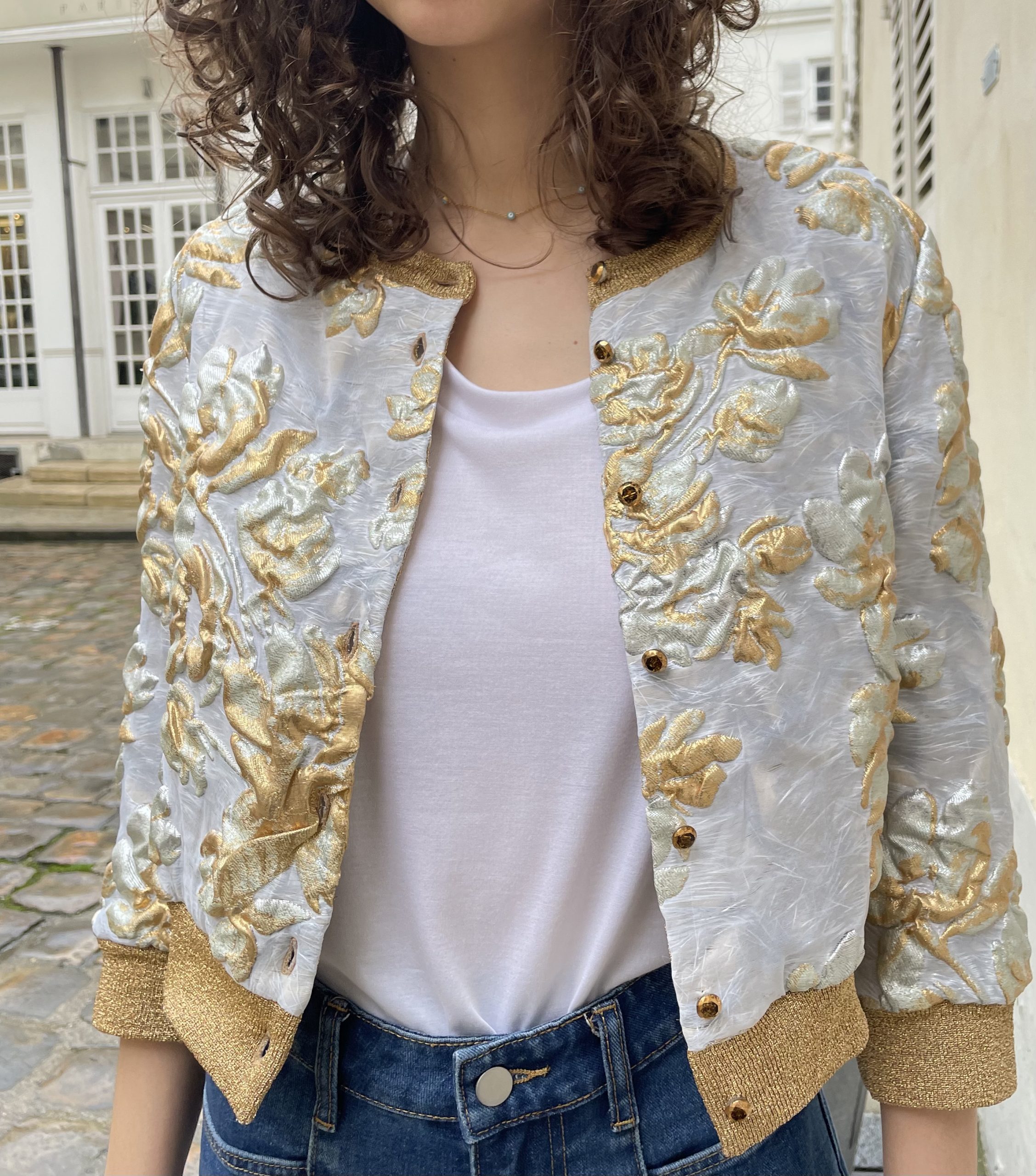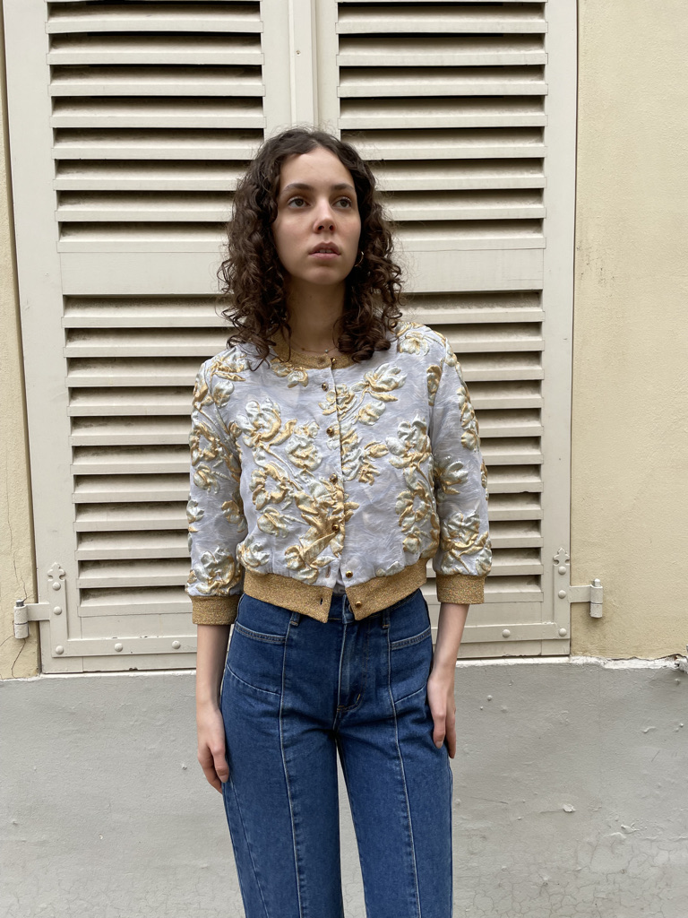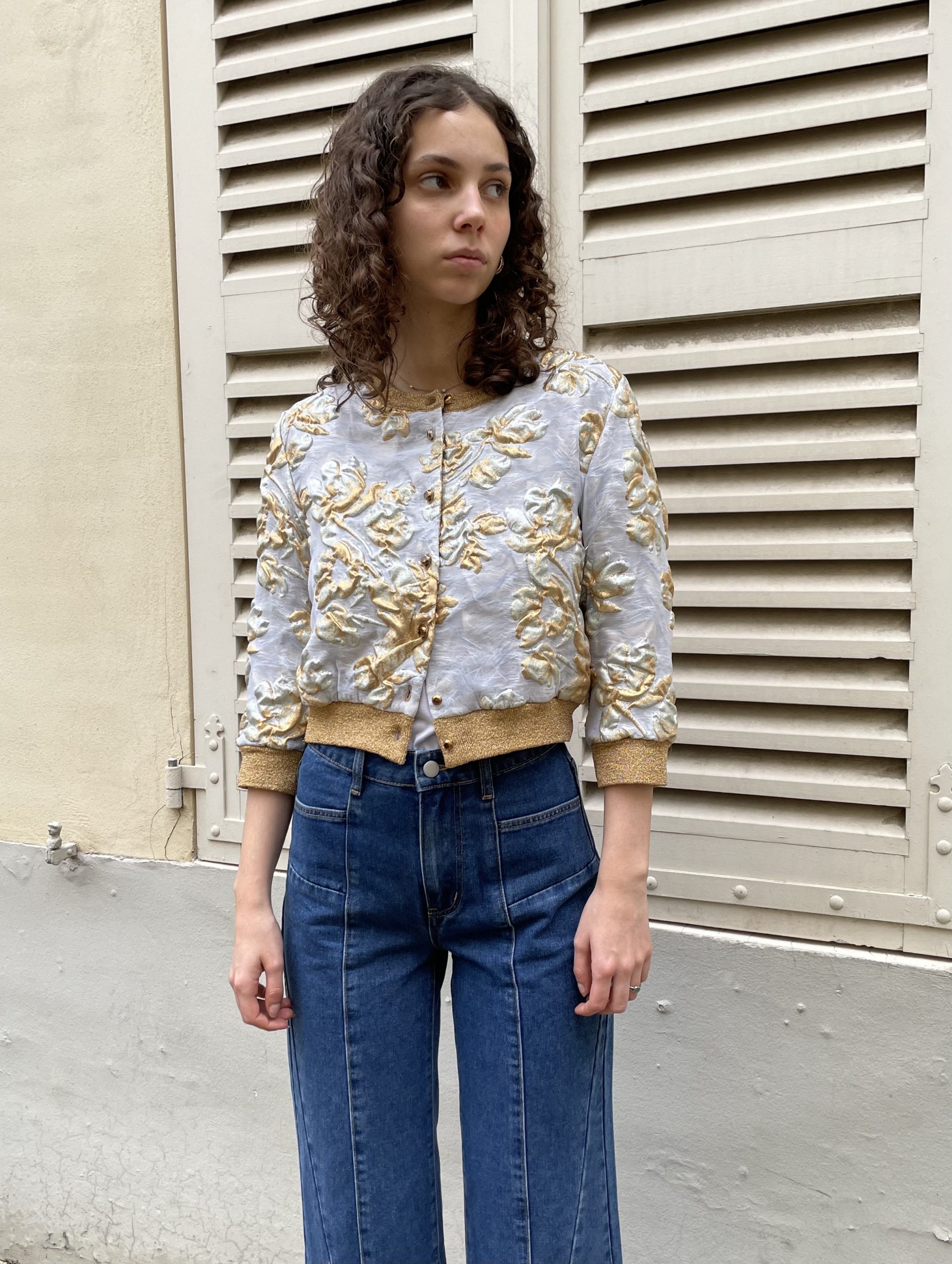 Selina – Silk Brocade Crop Jacket in Gold & Silver Floral Pattern