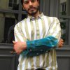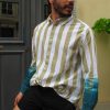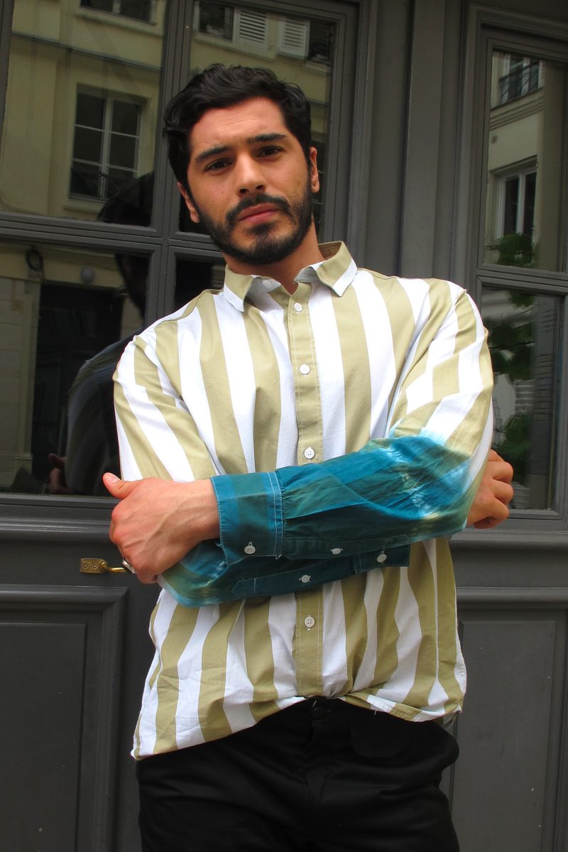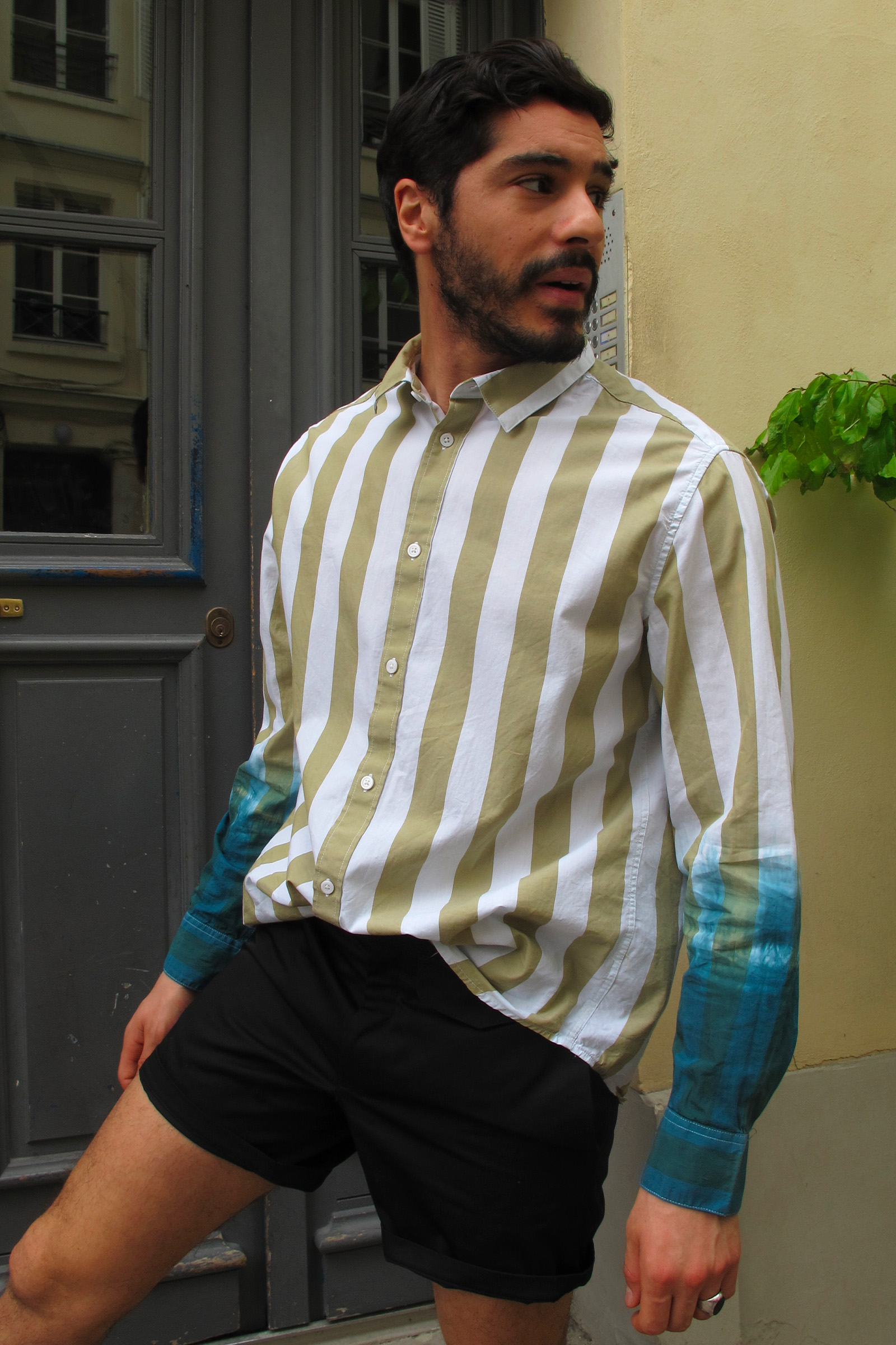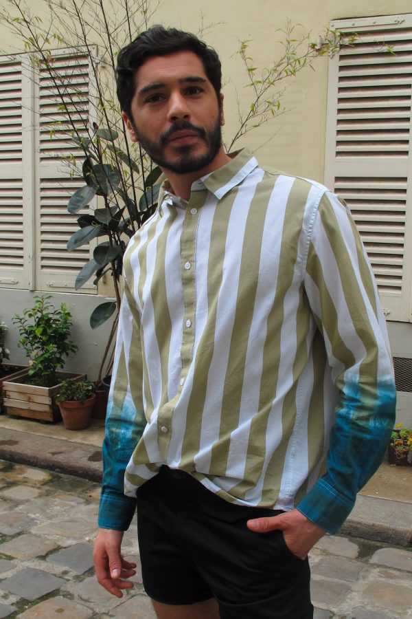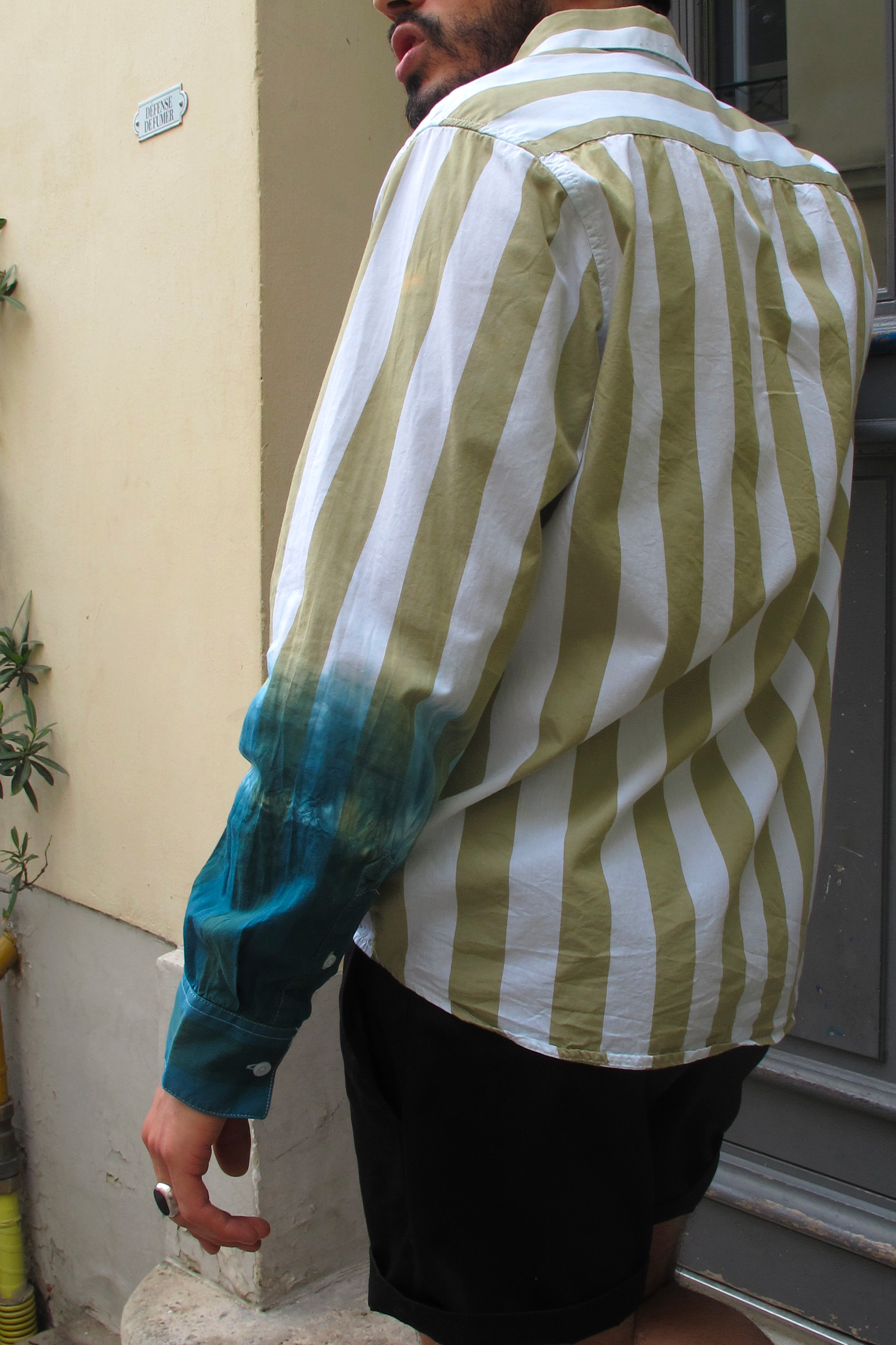 Striped cotton poplin shirt with tie dye details on the sleeves.