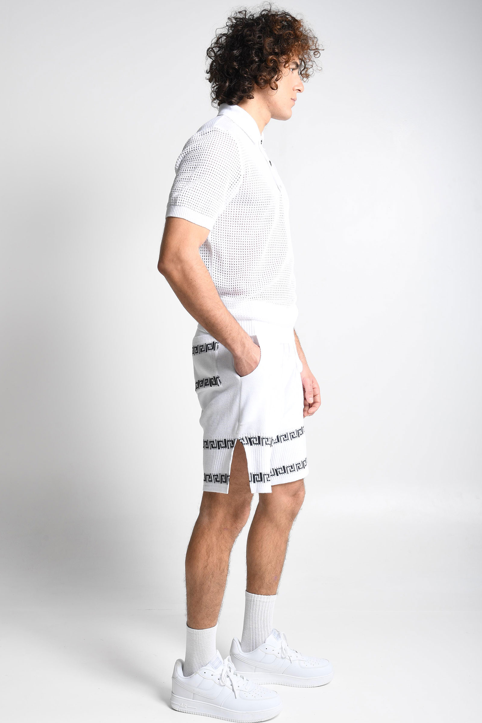 Short en maille avec détails en intarsia et fentes latérales.