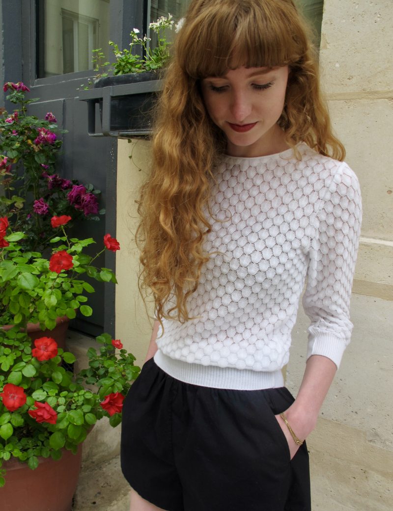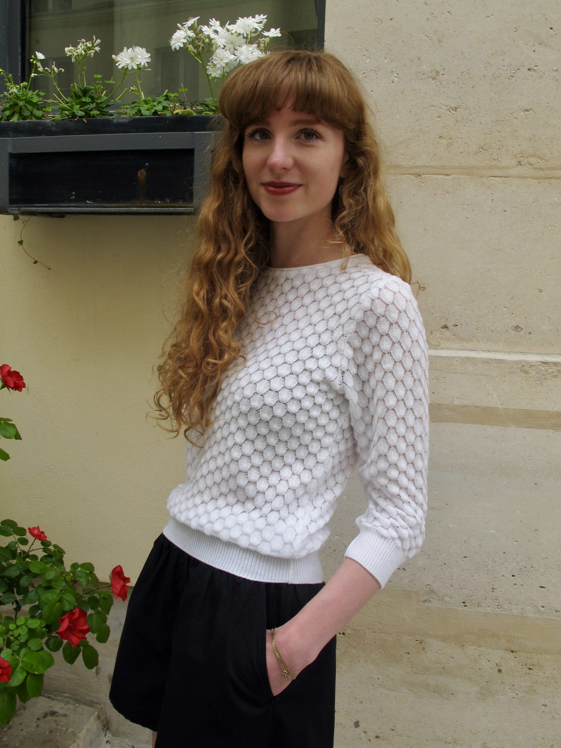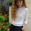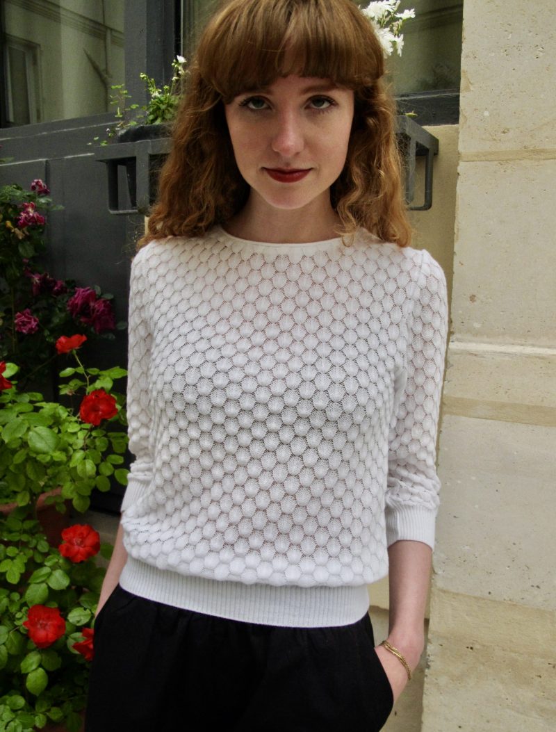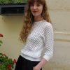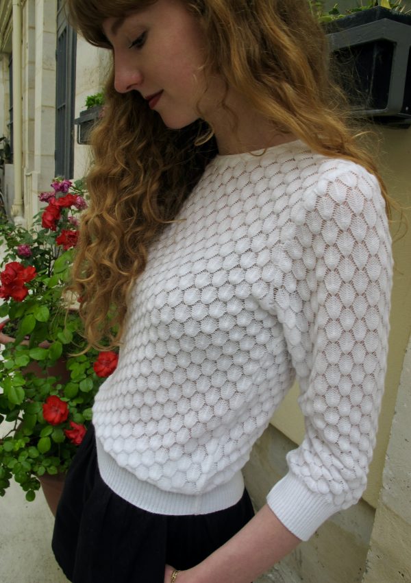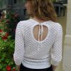 Fine Lace Knit sweater with 3/4 sleeves and large tear drop opening on the back, Inspired from 1940s knitwear.