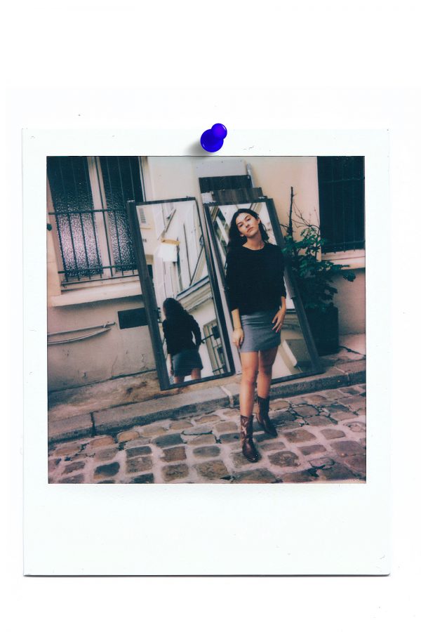High waist short skirt in wool blend checkerboard jacquard fabric.