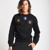 Round neck cotton sweatshirt with embroidered cat head cameos.