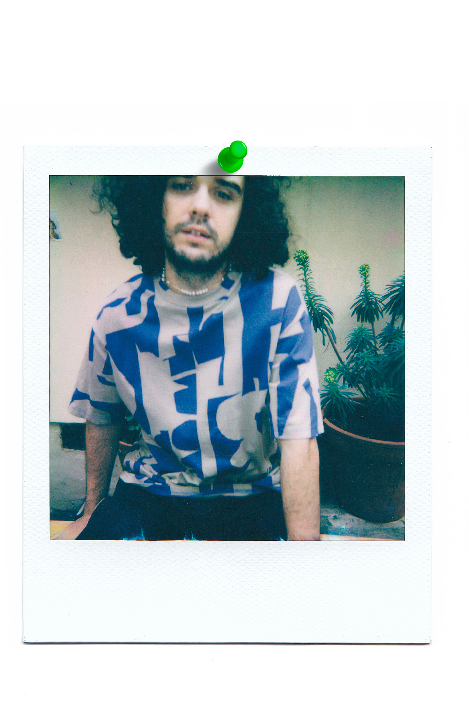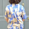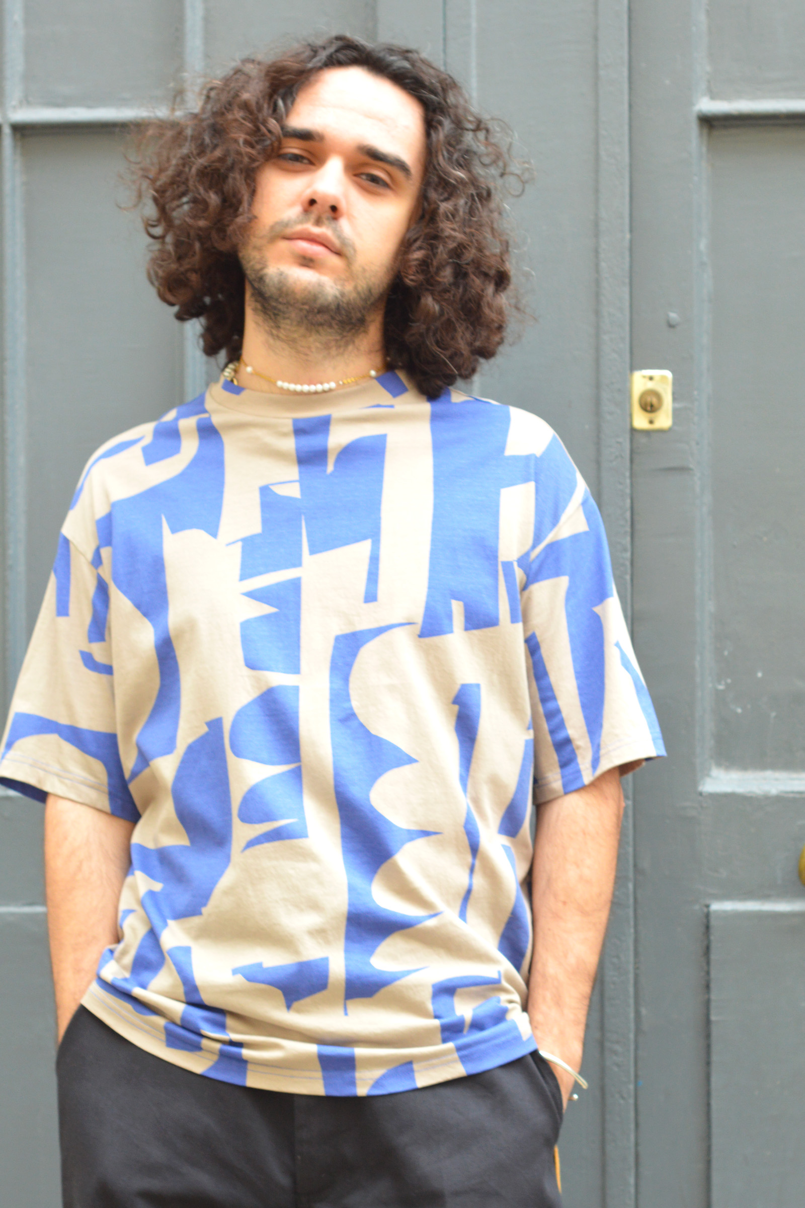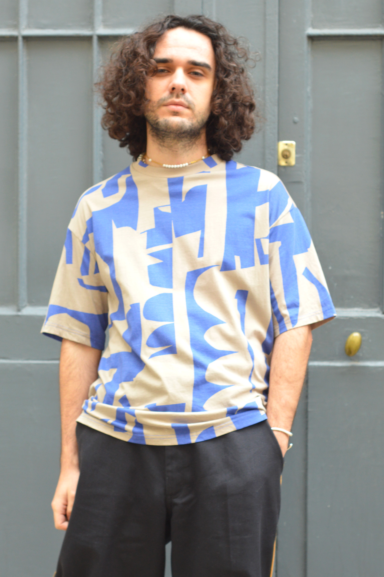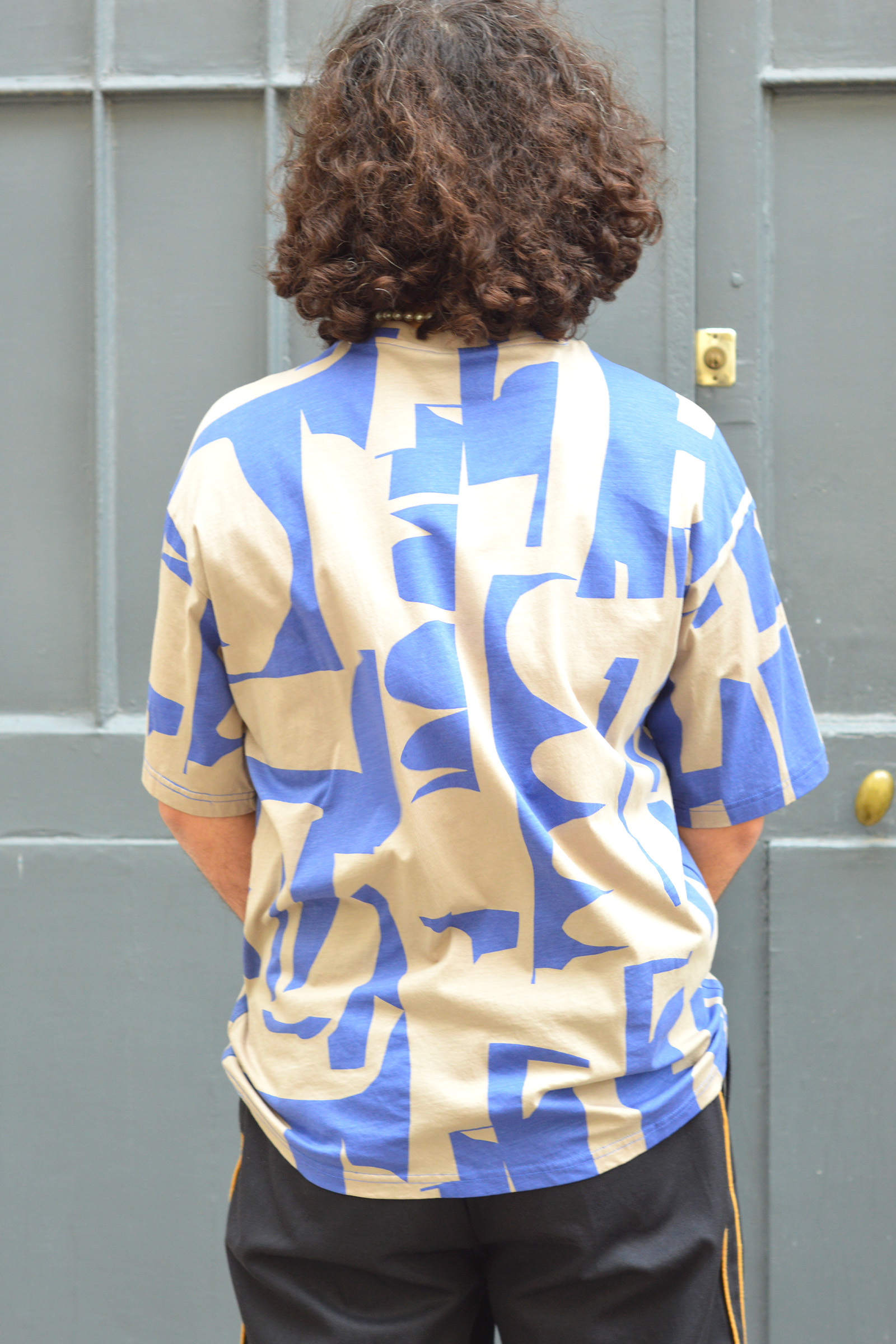 T-shirt col rond en coton à épaules tombantes avec un motif abstrait all-over.