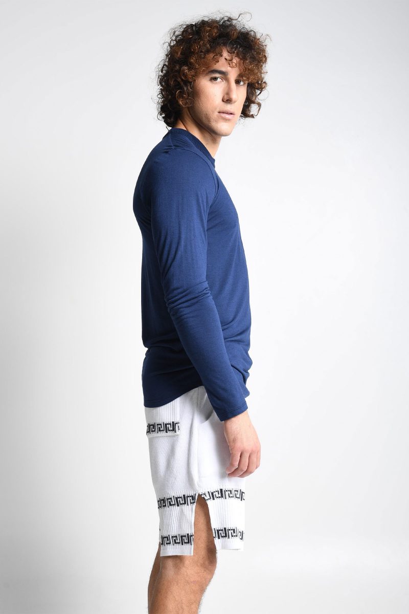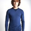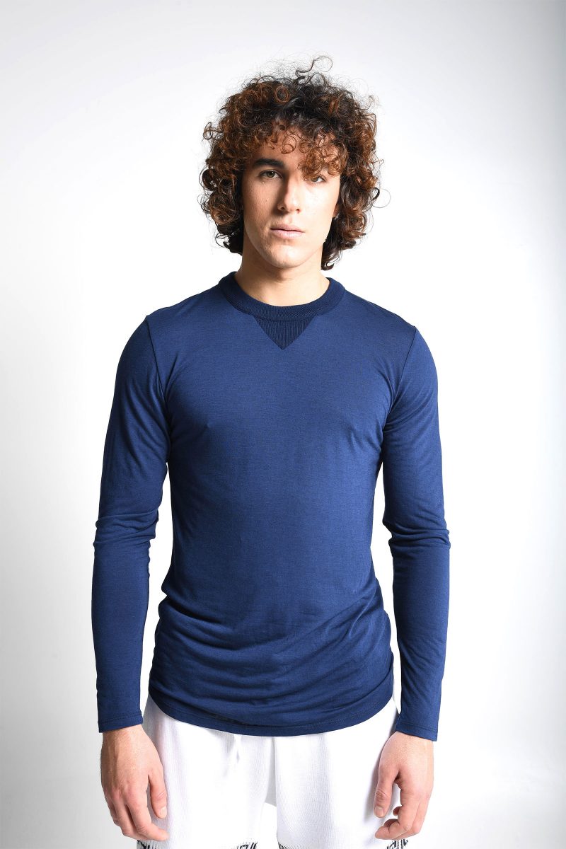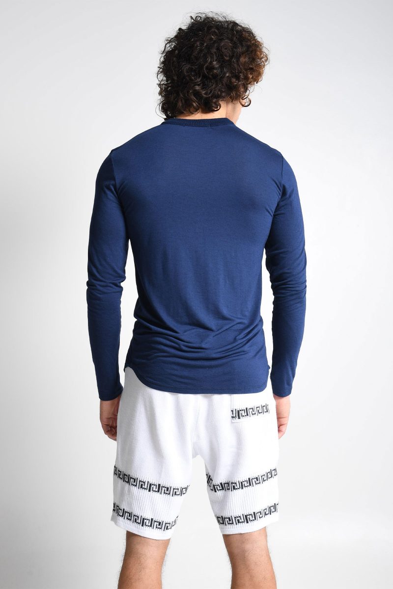 T-shirt manches longues en jersey fin et finition col rond en maille ton sur ton.