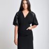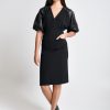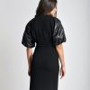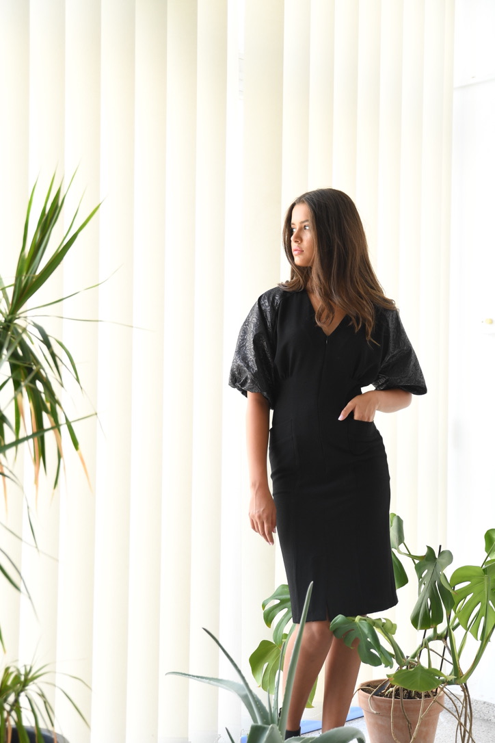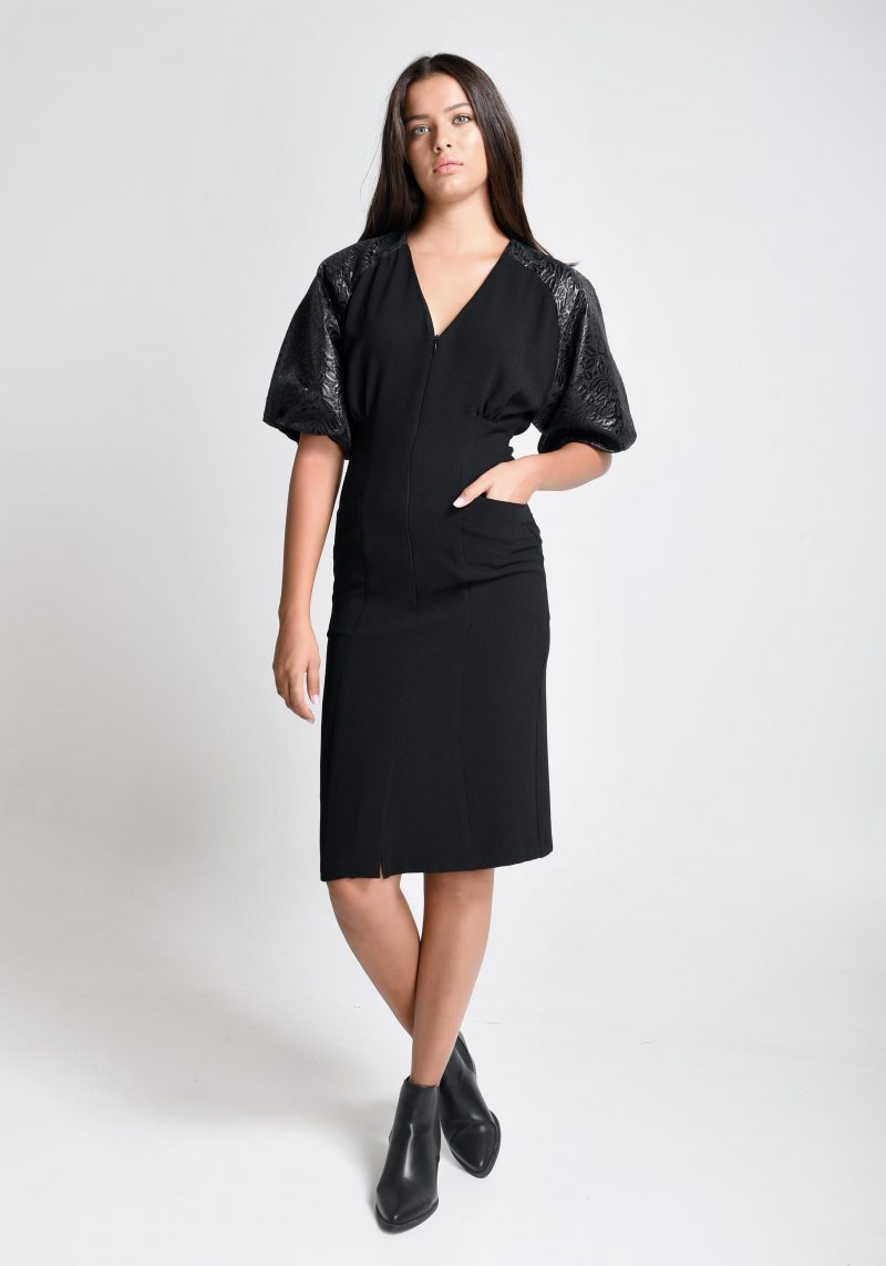 Talia – Constructed Crepe Dress with Brocade Balloon sleeves