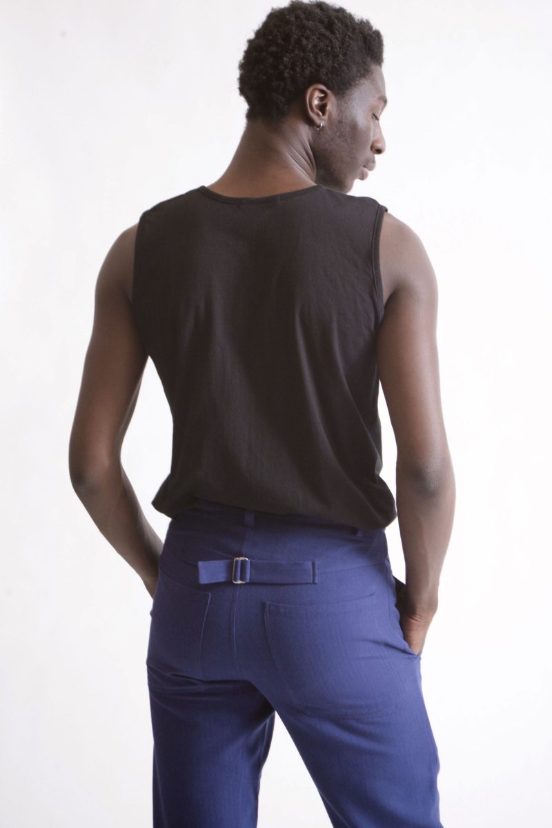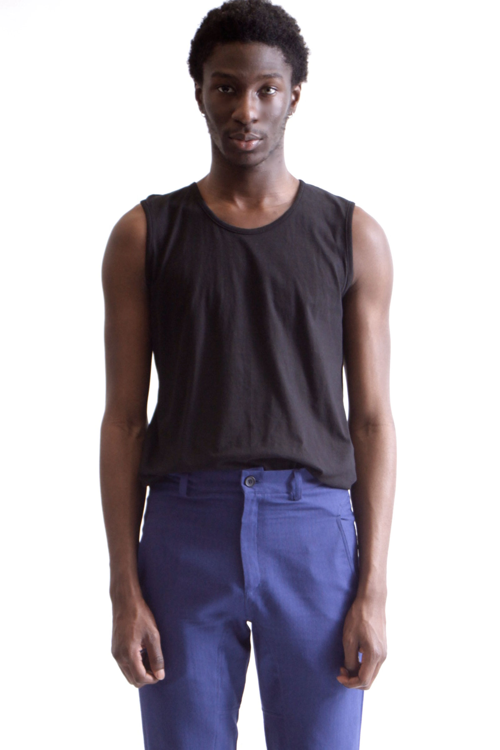 Top noir sans manches coupe ample à col rond.Le top est en 100% coton biologique.