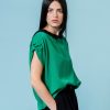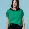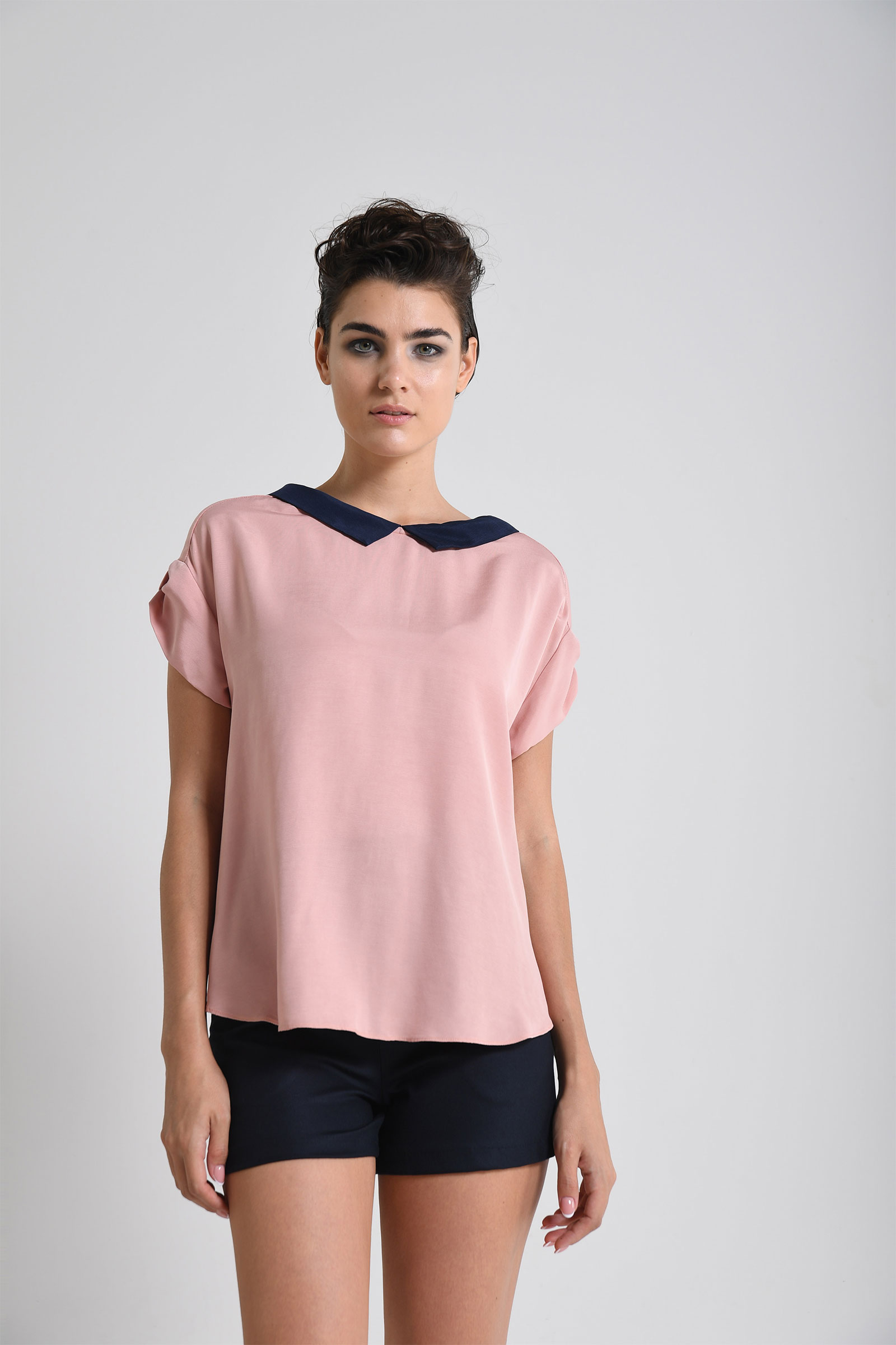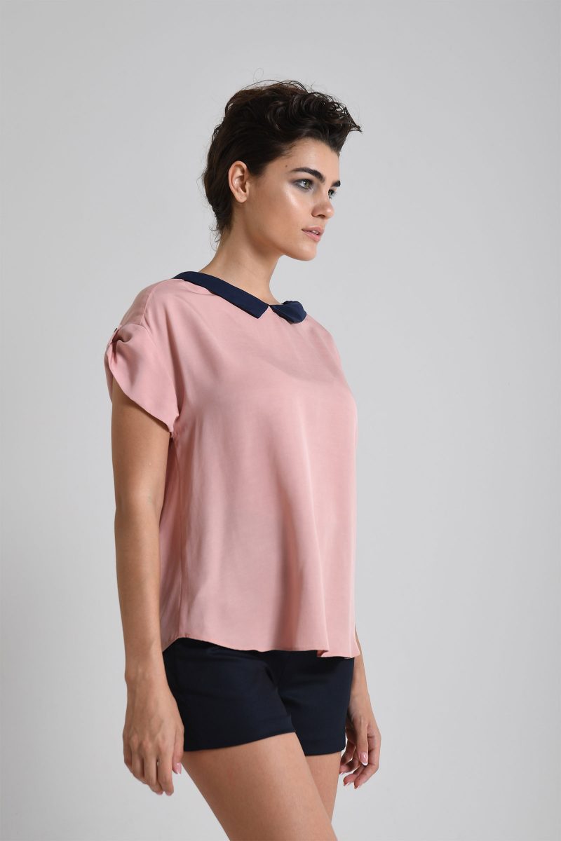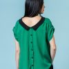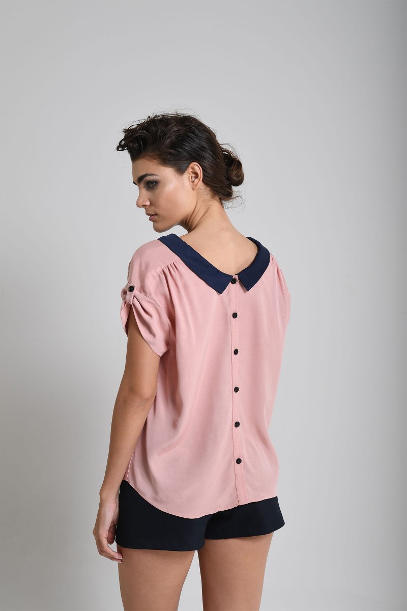 Haut ample à col Claudine avec fermeture par boutons en verre et manches tombantes ajustable.