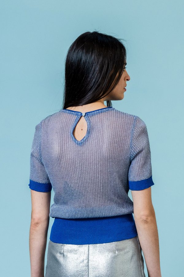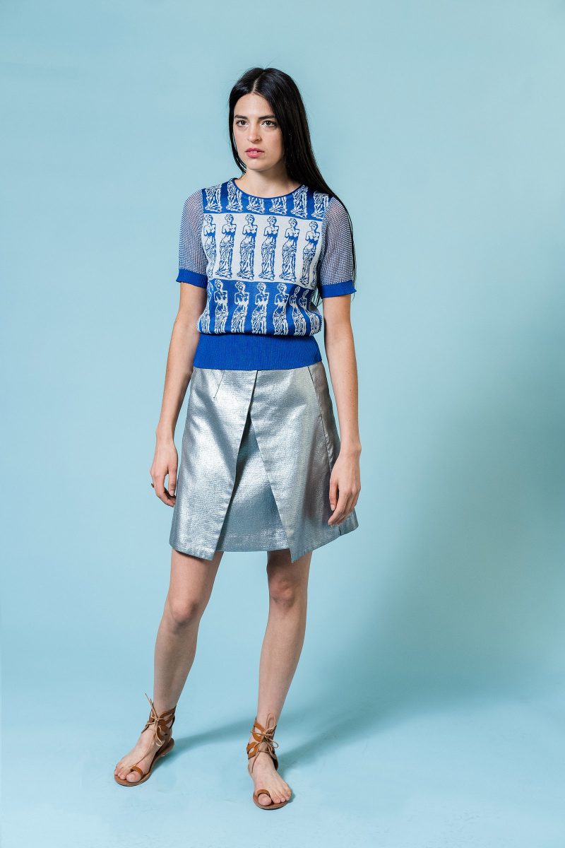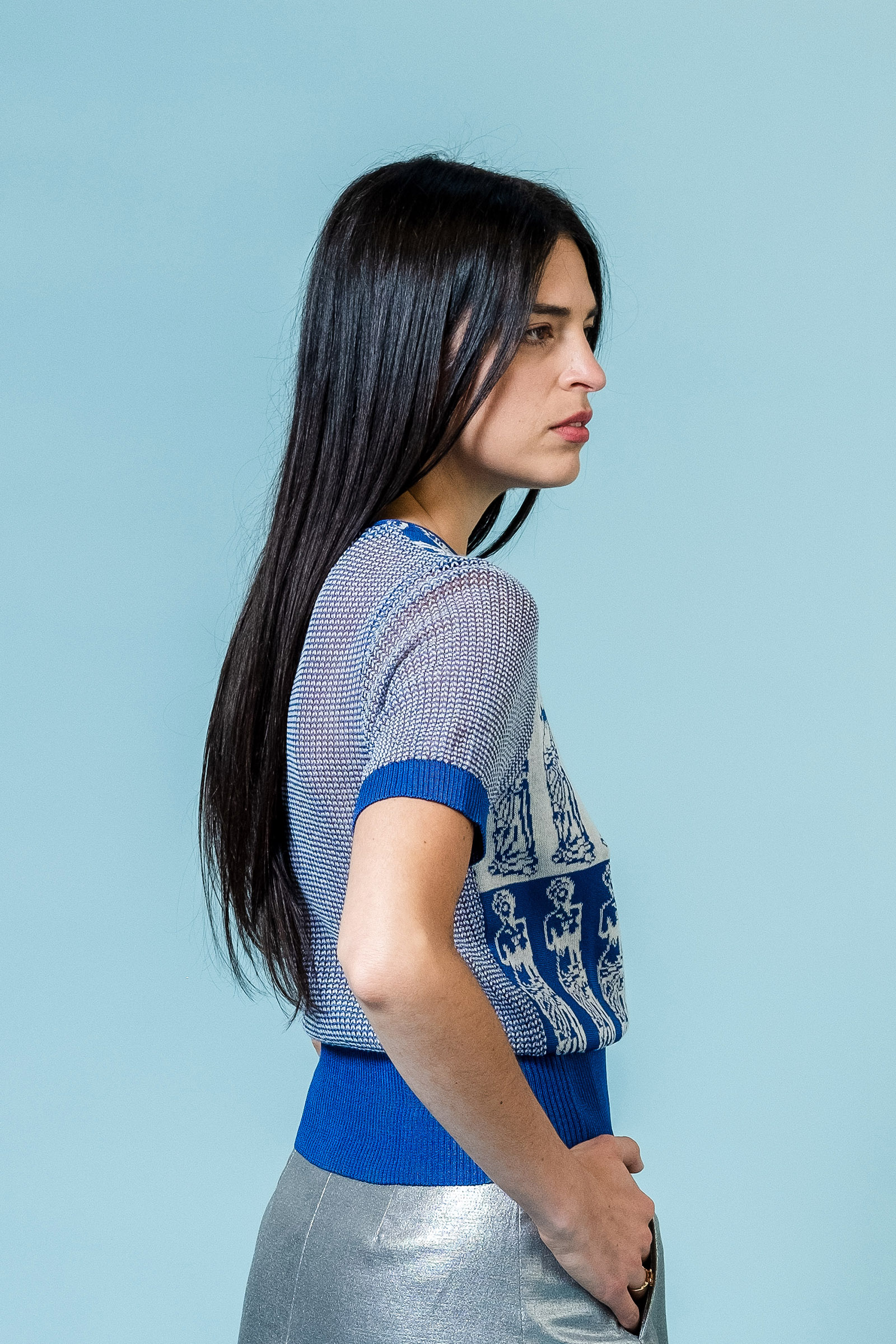 Knitted sweater with Venus of Milos pattern, the sleeves and back are mesh knit.