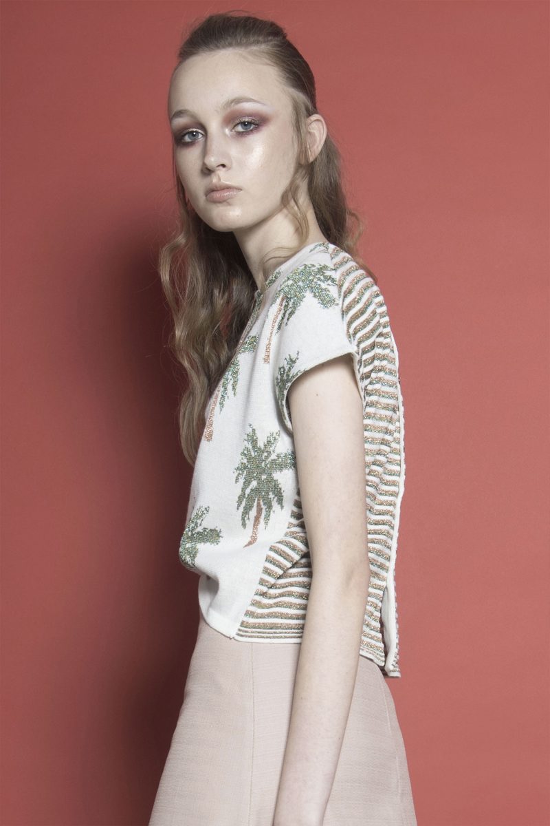 Top ample en maille avec épaules tombantes en jaquard palmier