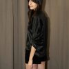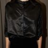 Luxurious silk lamé textured shirt with mandarin collar and length adjustable sleeves.