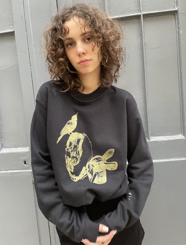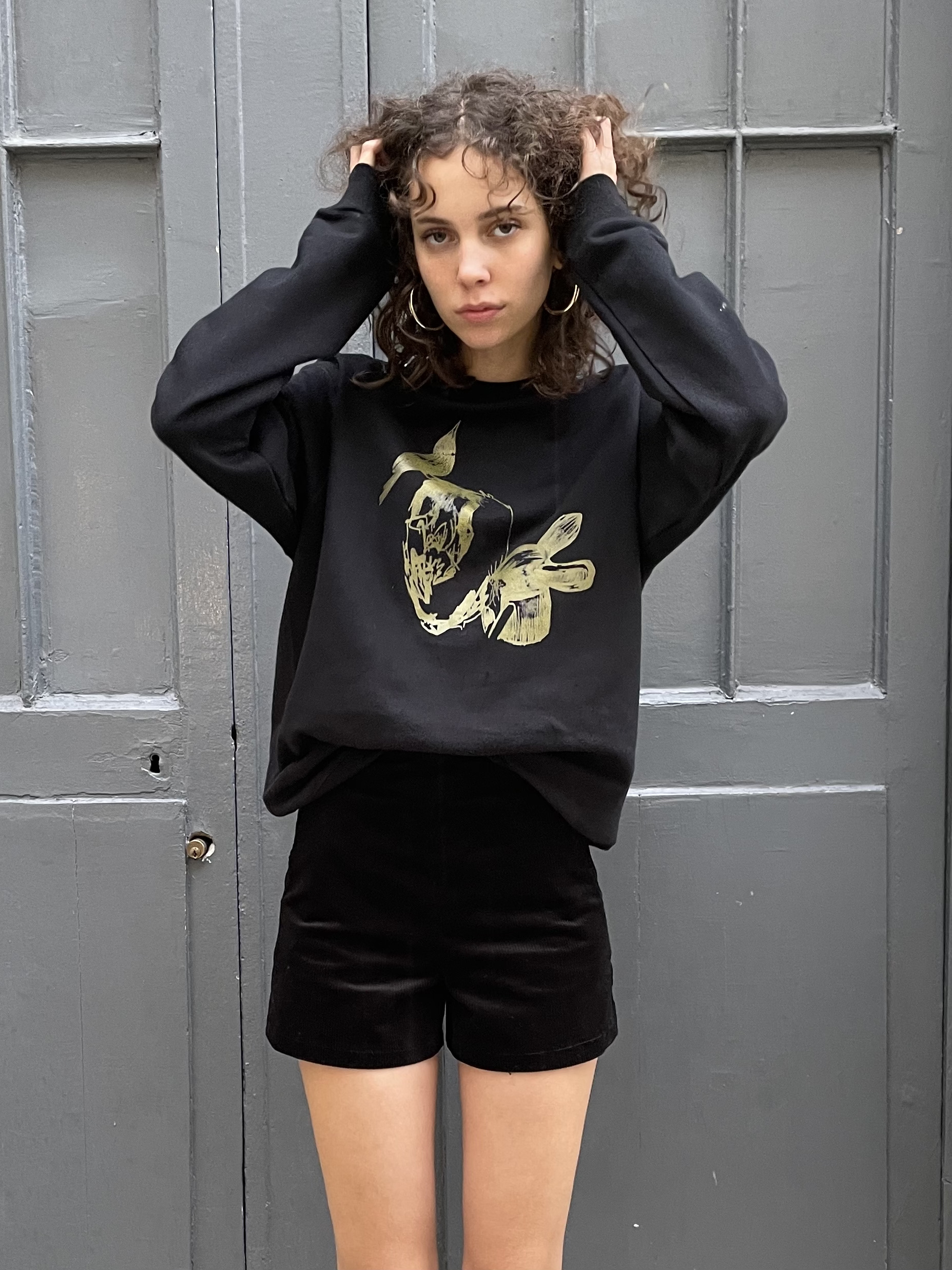 This soft unisex sweatshirt is printed with gold print designed by Japanese artist Shinsuke Kawahara for Erotokritos. The shape is unisex and perfect for a casual chic look.