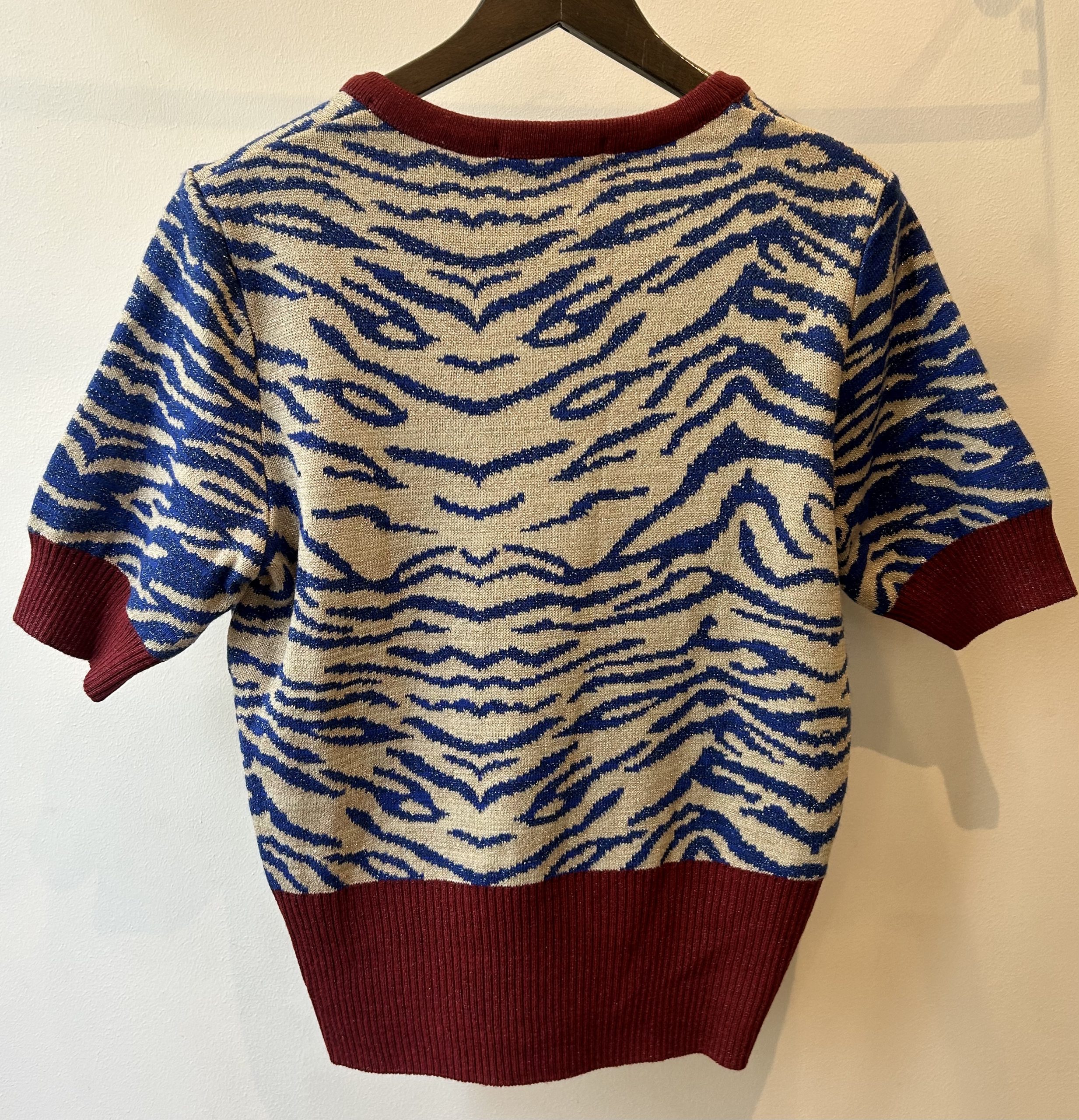 Zeina1 – Short Sleeve Zebra Jacquard Sweater